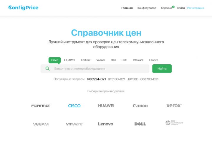 Верстка сайта из Figma для справочника цен "Configprice". Ссылка проекта на моем хостинге: