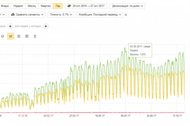 На сайте было размещено 140 страниц и приобретено 20 ссылок. Результат работ за год – 1500 посетителей в сутки