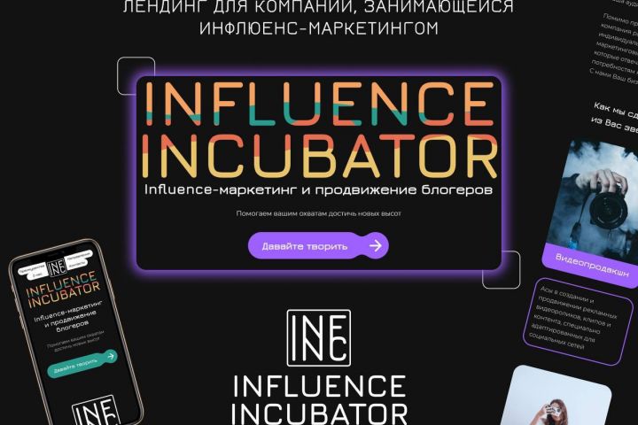 Сайт Influence Incubator, компании, специализирующейся на инфлюенс маркетинге и продвижению блогеров