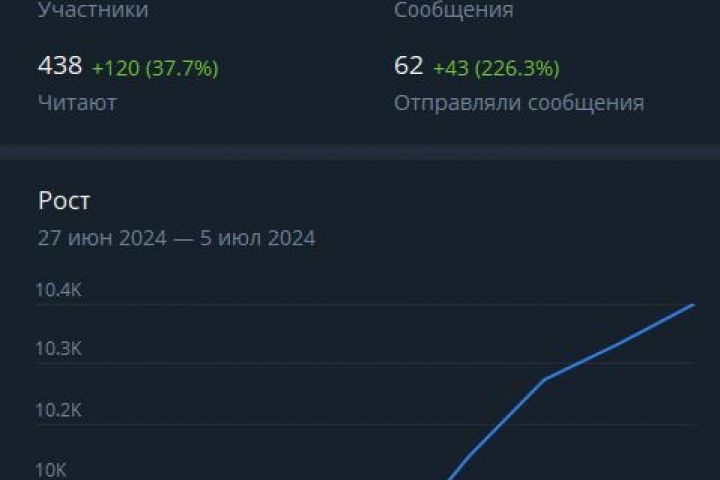 За короткий срок проведен анализ канала, изучены потенциальные места для привлечения новых подписчиков и клиентов. После начала нашей работы резко возросло не только количество подписавшихся, но и количество сообщений и заказов, читаемость канала и активность в нём.