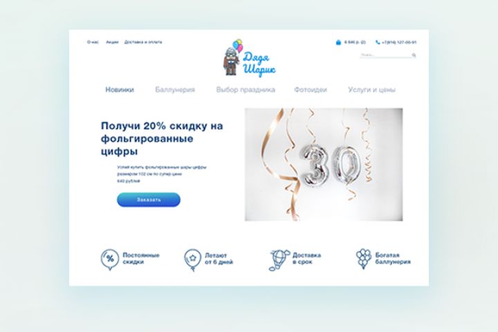 Создание интернет магазина под ключ по продаже шариков "Дядяшарик"
