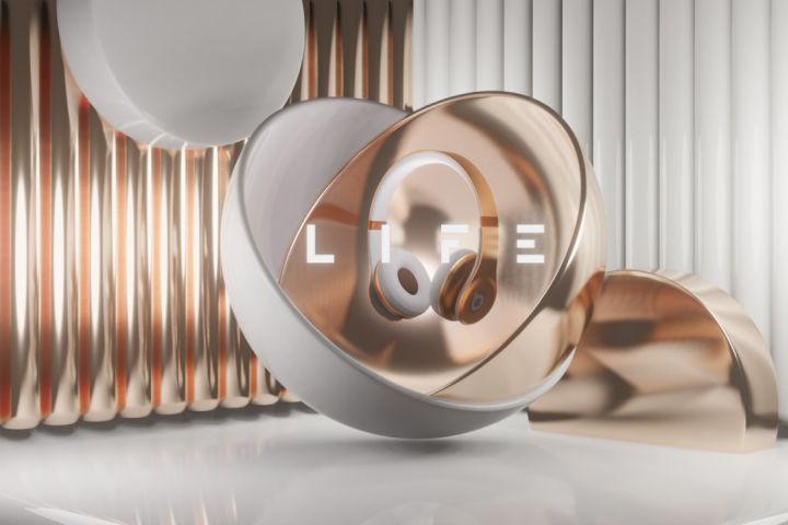 Выставлена сцена с 6 источниками света, работа заняла 2 часа. Модель наушников использовалась из библиотеки.