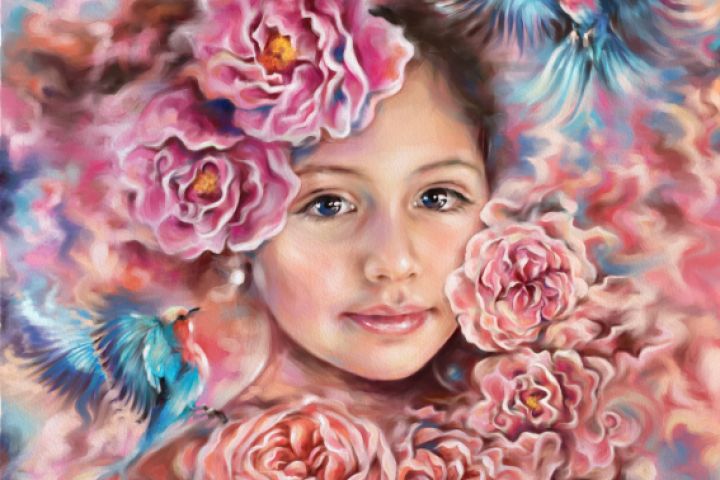 Детский портрет по фото. Стиль, детали и палитра подобраны под интерьер и в соответствии с пожеланиями заказчицы.