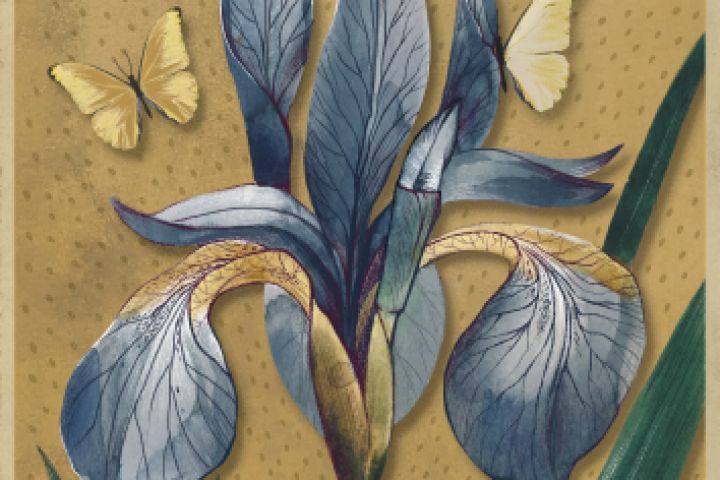 Изображение цветка выполнено акварельтными красками, графика добавлена в фотошопе. По мотивам нидерландского манускрипта XV века.