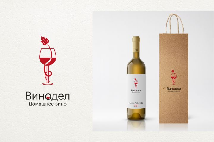 Как и требовалось техническим заданием, в логотипе изображен бокал для красного вина, который ассоциируется с брендом, а красный цвет как раз подчеркивает назначение бокала. Было принято решение изобразить лист, обвивающий бокал.