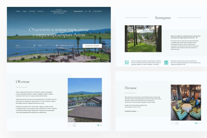 Задача: разработать дизайн многостраничного сайта для парк-отеля "Каменный ручей", где пользователи смог ознакомиться с перечнем услуг компании, а также забронировать подходящий номер.