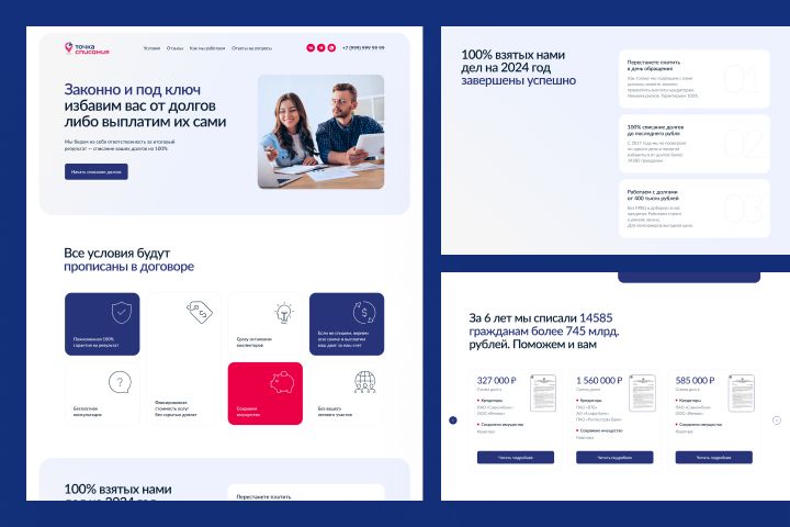 Задача: разработать лендинг под ключ для компании Точка списания, которая занимается списанием долгов на законных основаниях.