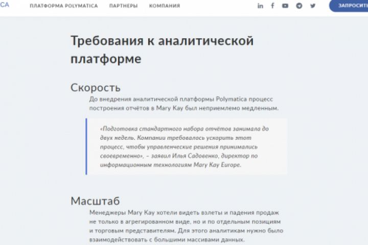Кейс: внедрение аналитической платформы Polymatica в компании Mary Kay (один из крупнейших косметических брендов).