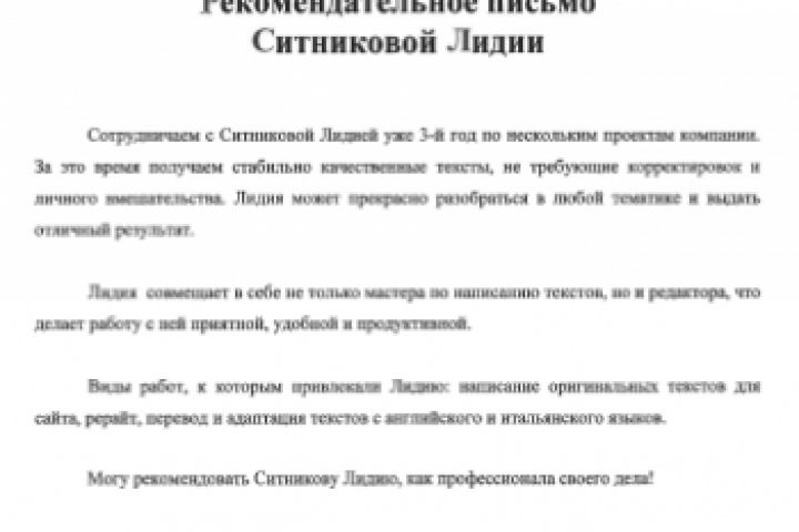 Рекомендательное письмо постоянного клиента "Стелс Дизайн"