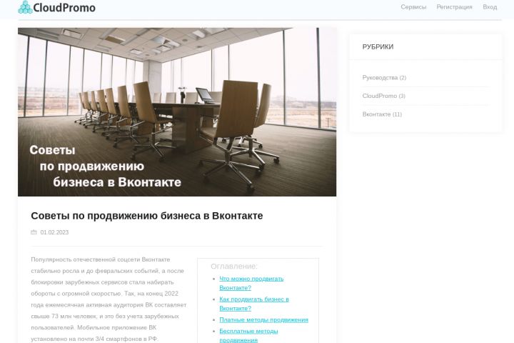 Лонгрид для сервиса CloudPromo. Подробное описание методов продвижения ВК. Сроки - 2 рабочих дня.