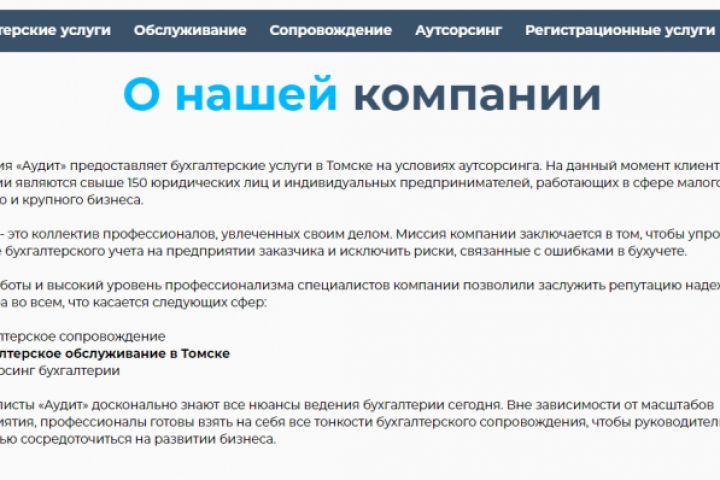 Проект: переработка текстов для сайта бухгалтерской компании «Аудит».