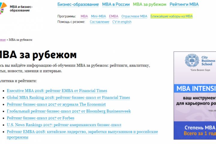 Лонгриды для портала о работе и бизнес-образовании (MBA, EMBA) - раздел "MBA за рубежом".