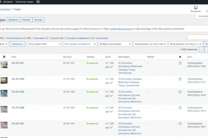 Наполнение магазина обоев fashionwallpapers.ru - Движок сайта WordPress