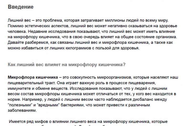 Имеется ряд мифов о влиянии лишнего веса на микрофлору кишечника, которые могут ввести в заблуждение людей. Разбор некоторых из них и вывод о важности правильного подхода к питанию и образу жизни для достижения устойчивых и положительных результатов.