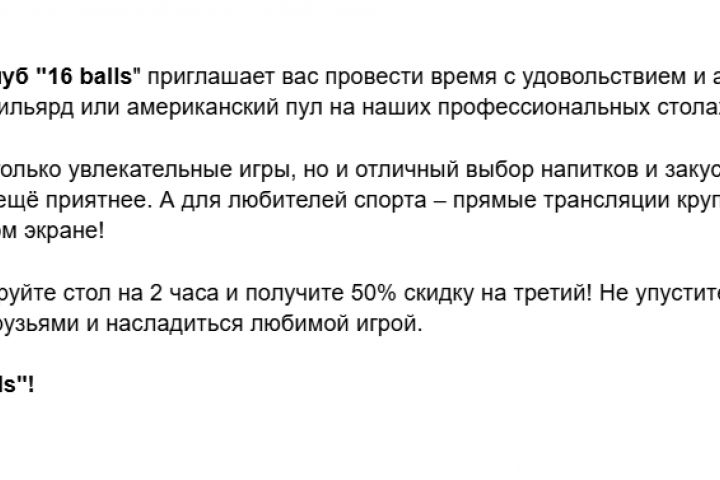 Реклама отдыха в клубе