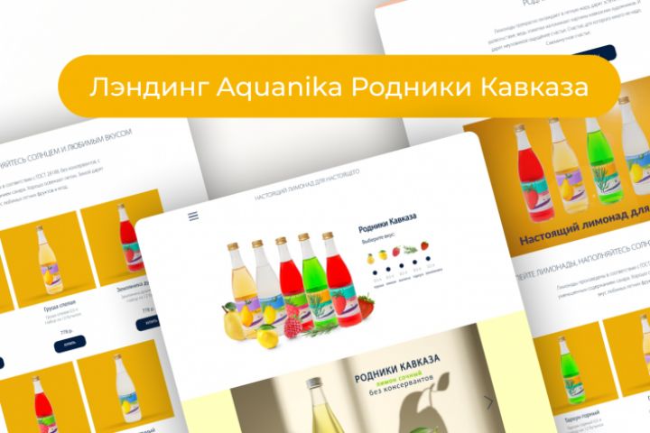 Лэндинг продукта Акваника Родники Кавказа - страницы из серии продуктов компании Акваника. Дизайн и создание лэндинга, подключение магазина, оплаты.