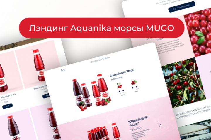 Лэндинг продукта Акваника Муго - страницы из серии продуктов компании Акваника. Дизайн и создание лэндинга, подключение магазина, оплаты.