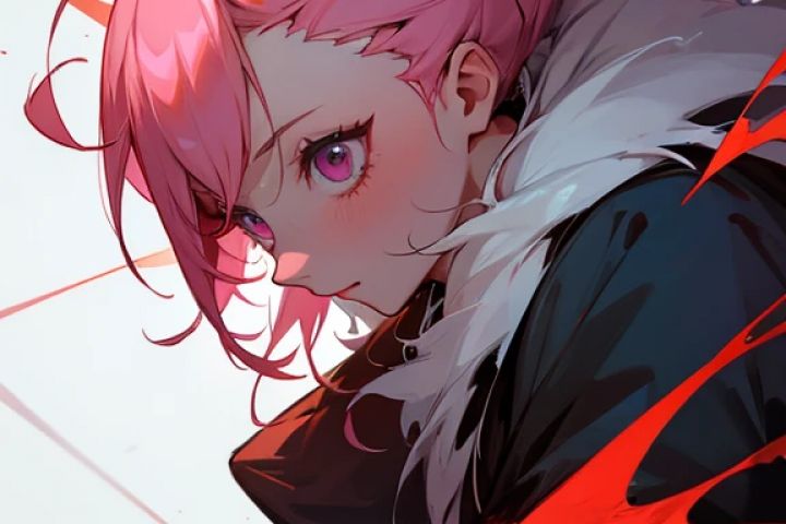 Девушка убивающая своих врагов в стиле аниме с преобладанием багровых цветов и брызгами крови сгенерировано ИИ Леонардо