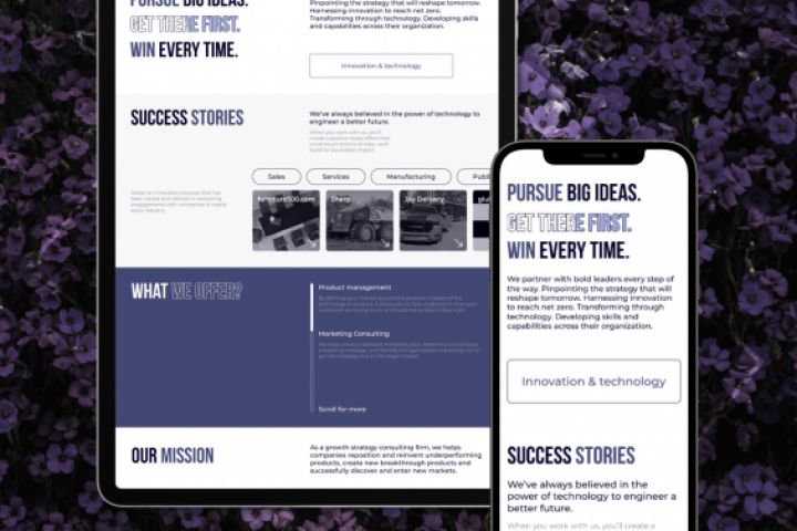 Исследования, UX и UI дизайн лендинга, брендинг для консалтинговой компании в США.