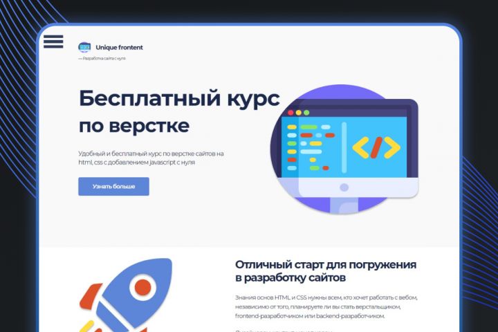 В проекте также использованы различные JavaScript-фичи, например, аккордеон, который создает интерактивное взаимодействие и облегчает навигацию по содержанию курса.