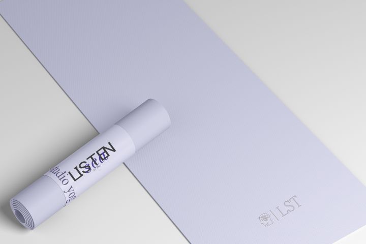 карточка, брендирование коврика, разработка логотипа с нуля под описание практик студии йоги