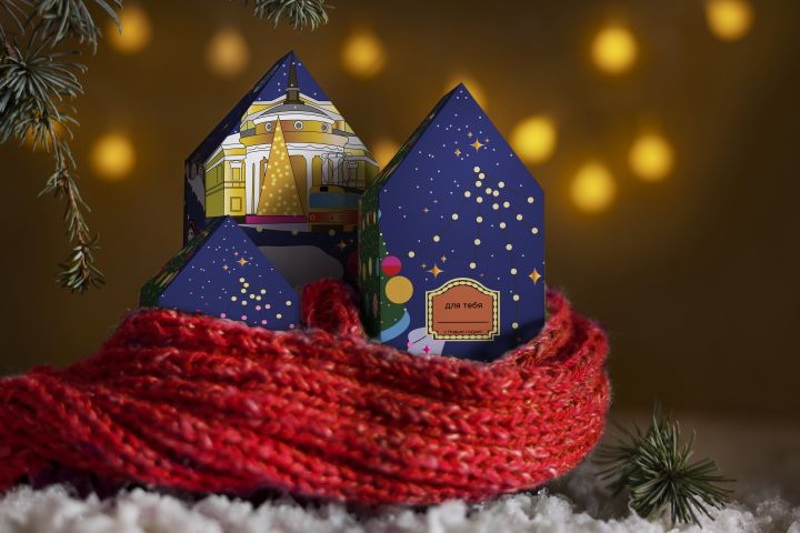 Концепт упаковки сладкого новогоднего подарка. Иллюстрации сделаны по мотивам праздничных украшений в моем родном городе Орле.