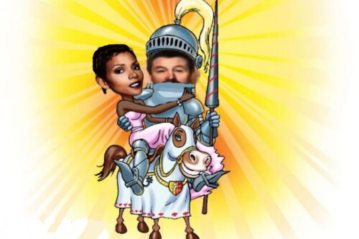 Название шаржа — "Рыцарь года" — подчеркивает ироничный и веселый характер изображения, намекая на то, что даже в мире рыцарей и доспехов есть место для романтики и веселья. Этот шарж вызывает улыбку и радует глаз, сочетая элементы средневековой культуры с современным стилем.