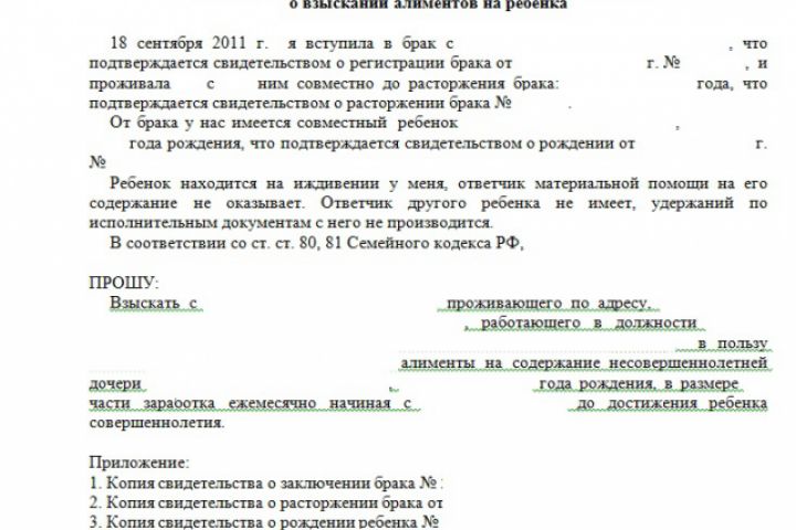 Заявление мировому судье о вынесении судебного приказа о взыскании алиментов на ребенка