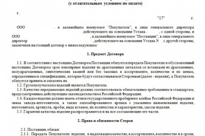 договор на поставку ювелирных изделий(с отлагательным условием)