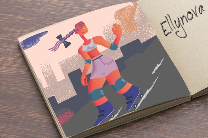 Иллюстрация девочка на роликах
