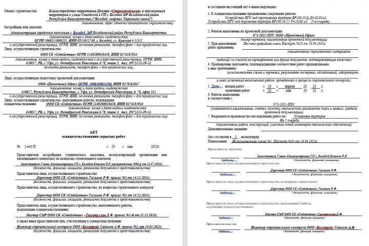 Для оформления и контроля за выполнением скрытых работ используется акт освидетельствования выполненных скрытых работ (АОСР).