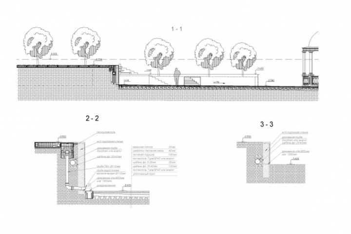 Благоустройство. Подпорная стена. Разрез