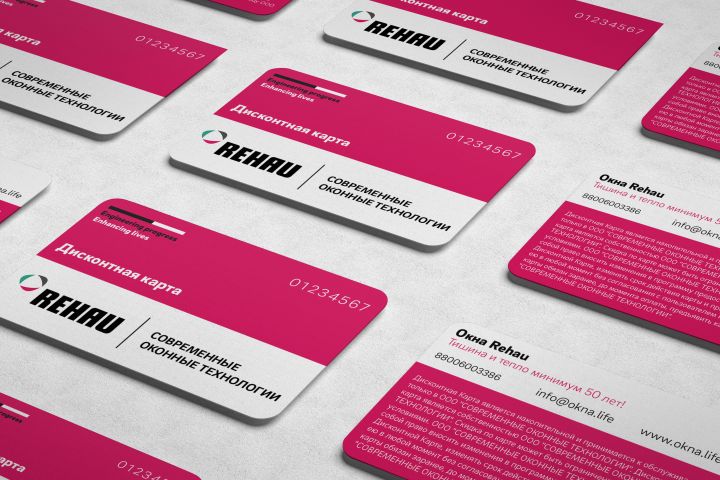 Концепт дисконтной карты для партнера компании Rehau. Разработка по брендбуку.