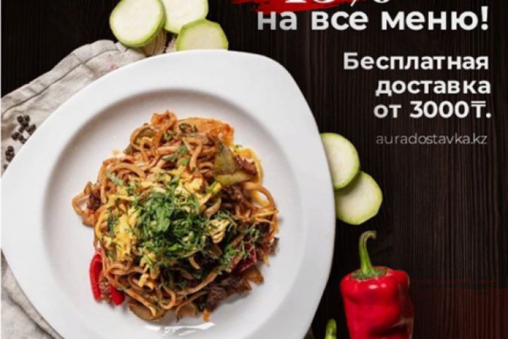 Семейный ресторан европейской, восточной, японской кухни Аура в г. Нур-Султан, Казахстан. Действуют два направление: непосредственно ресторан и доставка (отдельные блюда, ланчи и заморозка).