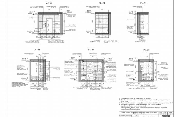 Развертки стен по санузлу/ванной комнате. Отделка. Мебель. Условные обозначения декора