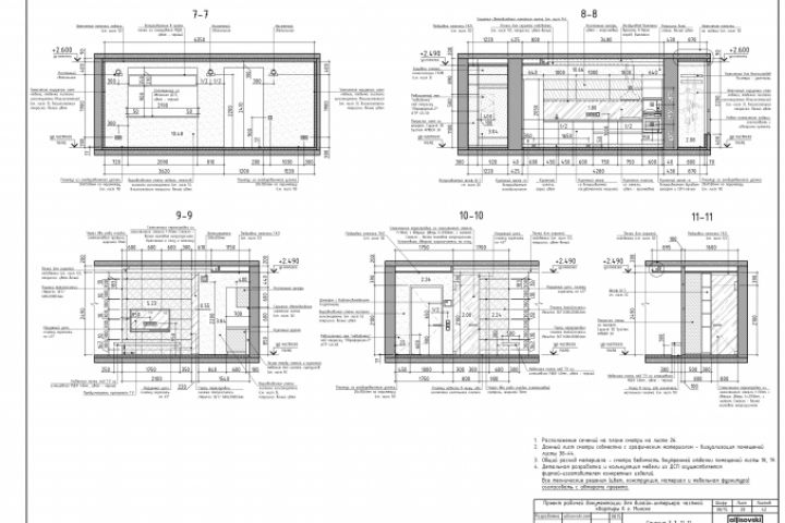 Развертки стен по кухне. Отделка. Мебель. Условные обозначения декора