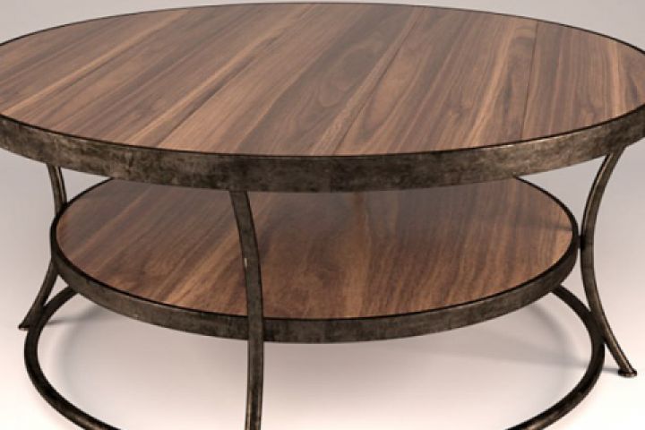 кофейный деревянный столик с золотистой оконтовкой
