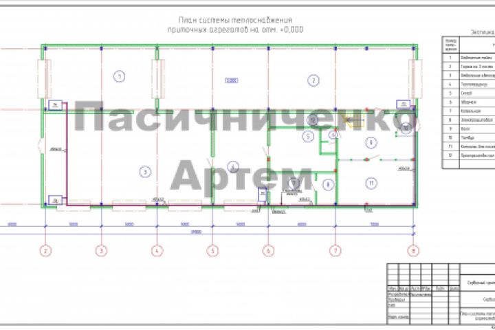 План систем теплоснабжения приточных агрегатов на отм. 0,000