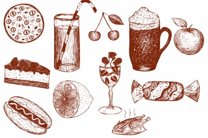 векторный набор еда контуры