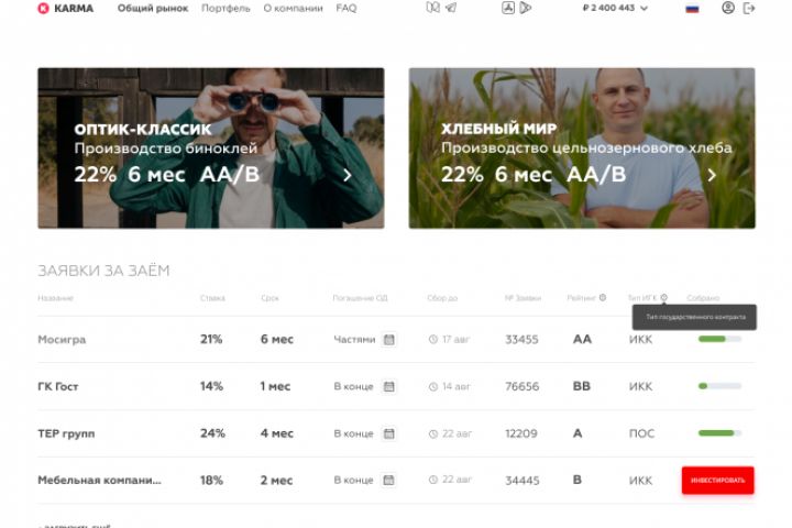 Karma – краудлендинговая платформа, которая помогает владельцам малого и среднего бизнеса искать инвесторов и получать займы.