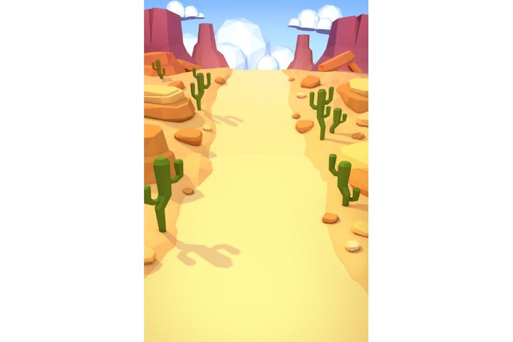 Концепт-фон для игры в стиле лоу-поли. Тема дикого запада, пустыни. Cinema4D + Photoshop