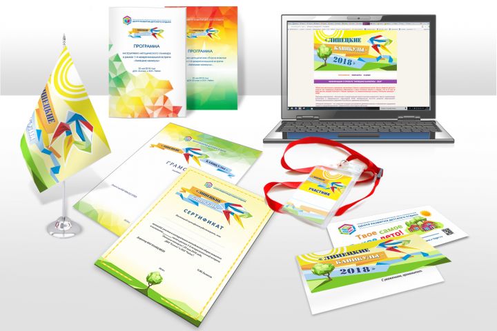 Разработка логотипа мероприятия, брендирование полиграфии (дипломы, бейджи, открытки), сувениров (флажки, ручки, блокноты), веб-элементов -шапка для сайта, группы, рекламные креативы.