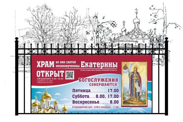 Печать на баннерной ткани. Выполняет роль вывески - режим работы храма.