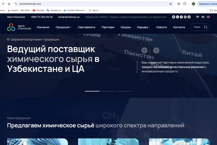 Создание сайта для поставщика химического сырья в Узбекистане и ЦА.
