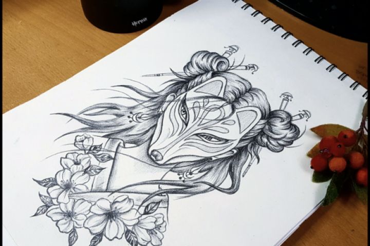 Разработала эскиз татуировки по требованиям заказчика. В дальнейшем этот эскиз был нанесен мной в виде татуировки.