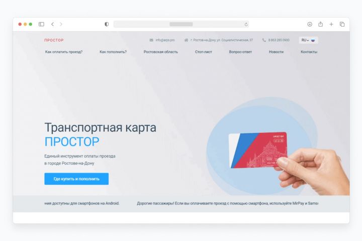 Единый инструмент оплаты проезда в городе Ростов-на-Дону с возможностью онлайн-оплаты проезда через мобильное приложение компании с любого смартфона.