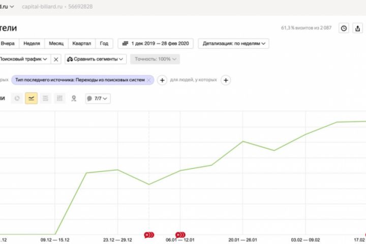 Над сайтом работаем 3-и месяца. За это время вывели все вч слова тематики в ТОП-10. Из всех собранных ключевых слов по киям вышли в ТОП-10 по 77% (было 26% на момент начала продвижения).