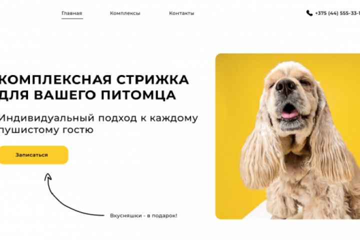 Дизайн сайта-одностраничника для студии по стрижке собак.