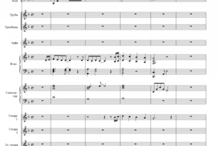 Партитура для солиста с оркестром: все партии сняты нота-в-ноту, как звучат в исходной аудиозаписи. Партию голоса заказчик попросил набрать без текста.