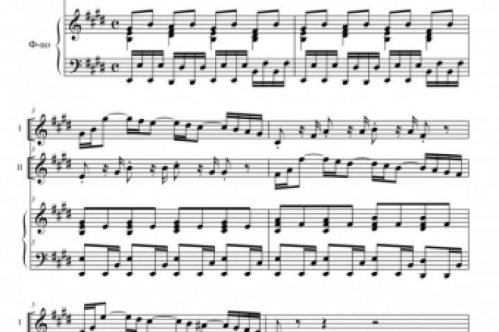 Оригинал - саундтрек из кинофильма "Повторный брак". Выполнено: нотная аранжировка для живых выступлений ансамбля (две скрипки и фортепиано).